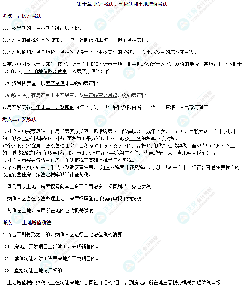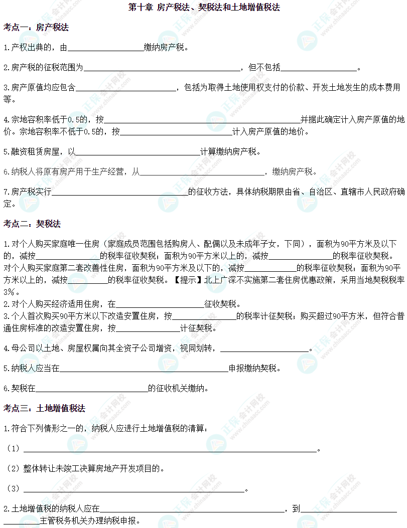 【注会税法默写本——第十章 房产税法、契税法和土地增值税法】
