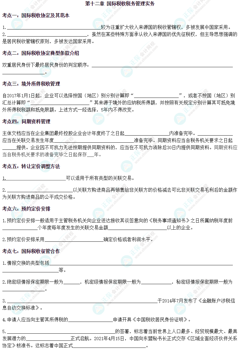 【注会税法默写本——第十二章 国际税收税务管理实务】