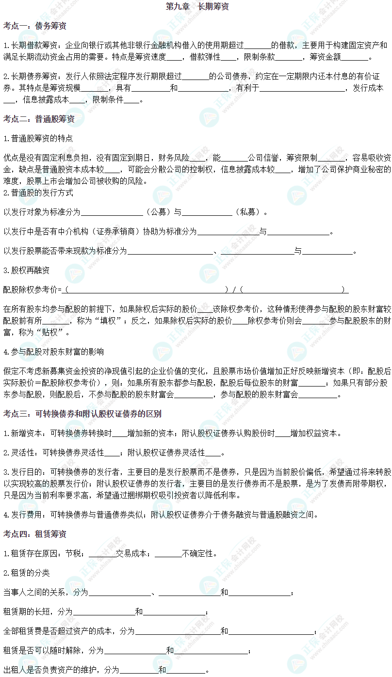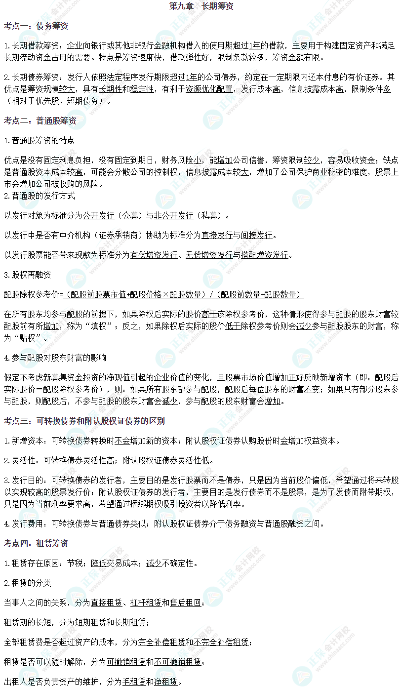 【注会财管默写本——第九章 长期筹资】