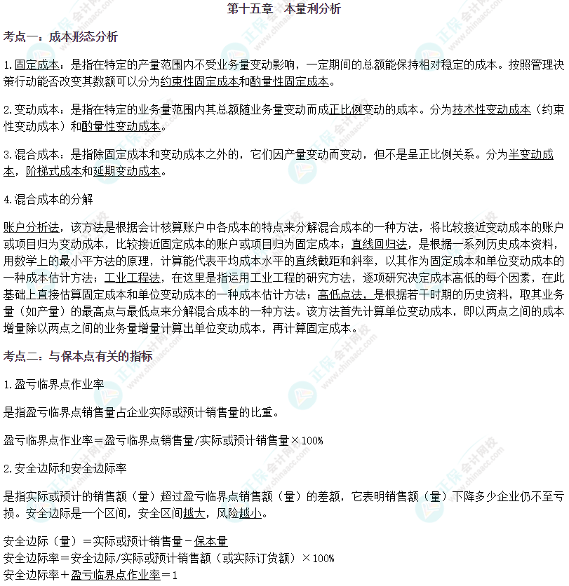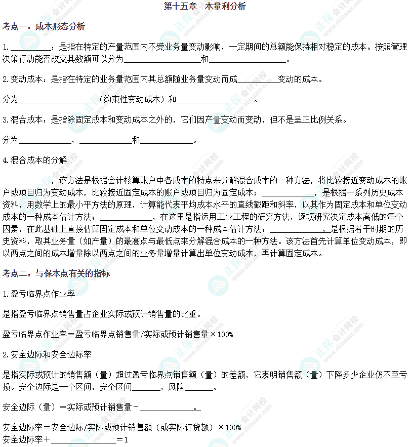 【注会财管默写本——第十五章 本量利分析】