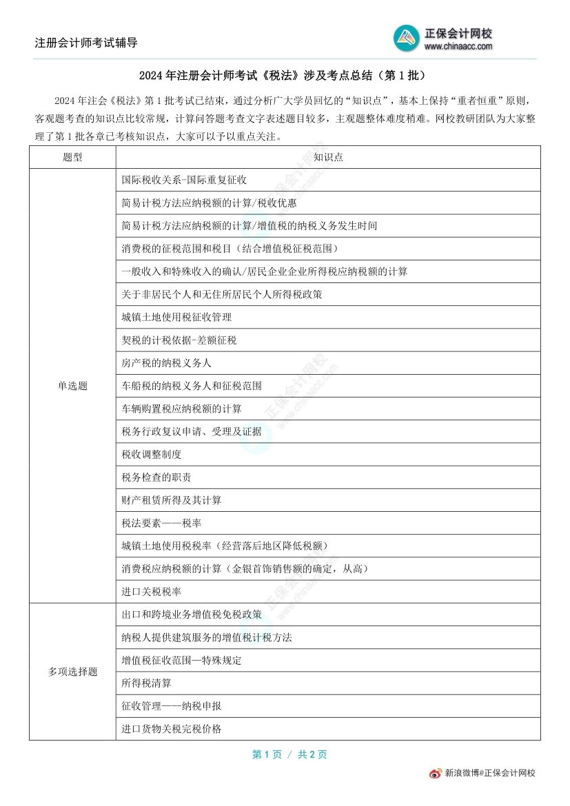 推荐阅读:2024年注册会计师考试《税法》涉及考点总结(第二批次)