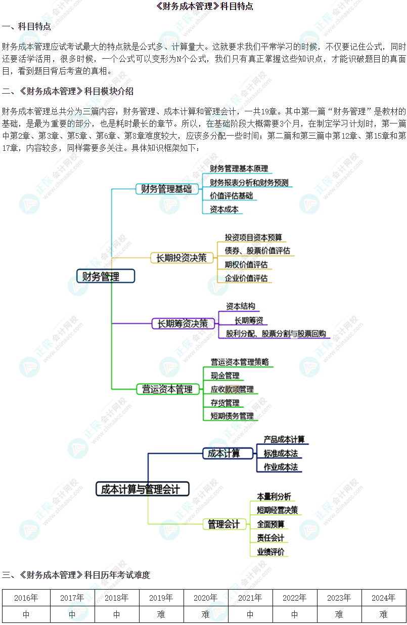 2025年注会《财务成本管理》科目特点及难度