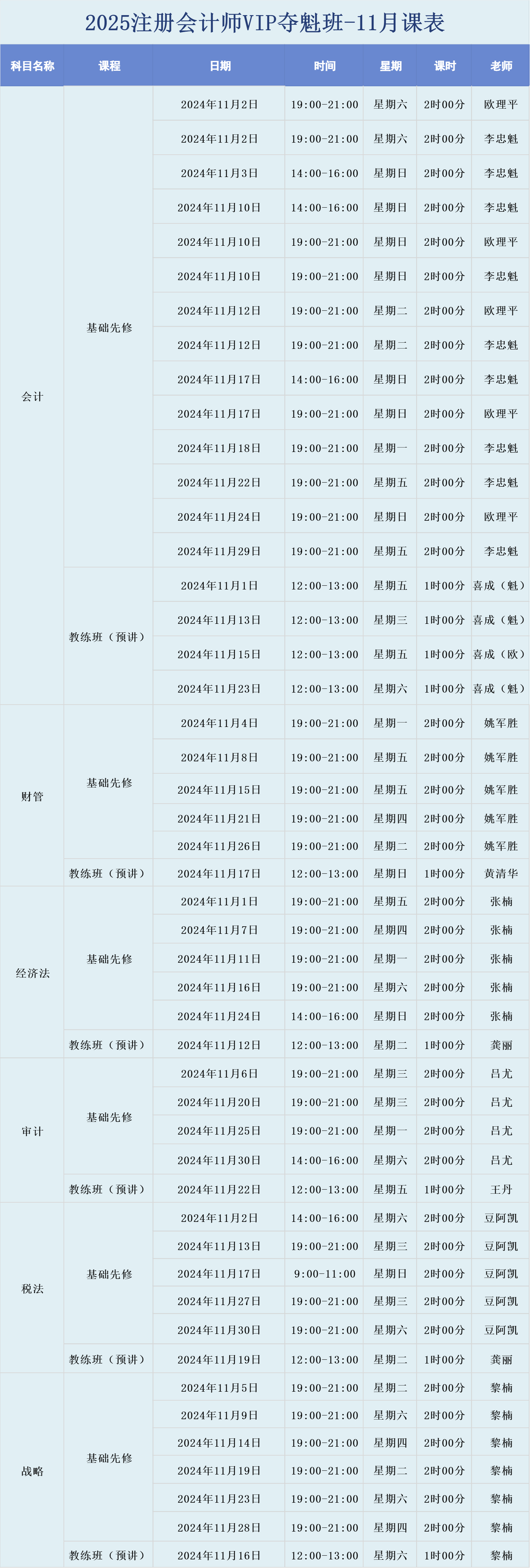 网校2025年注册会计师VIP夺魁班11月课表出炉!备考学习自制力差、基础薄弱或想听直播课的各位同学,快来!