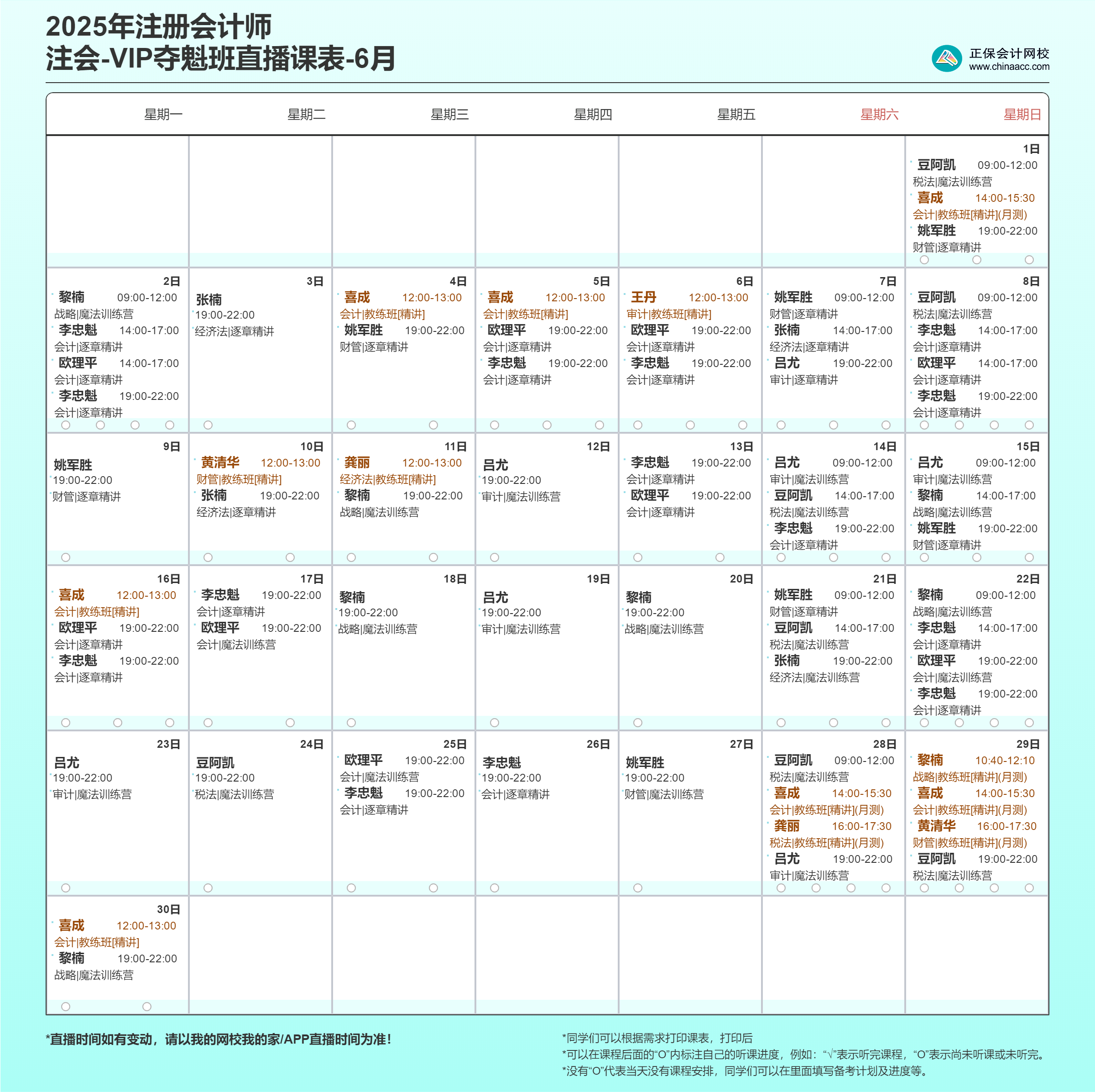2025年注册会计师VIP夺魁班6月直播课表出炉啦!备考学习自制力差、基础薄弱或想听直播课的各位同学,快来学习吧!