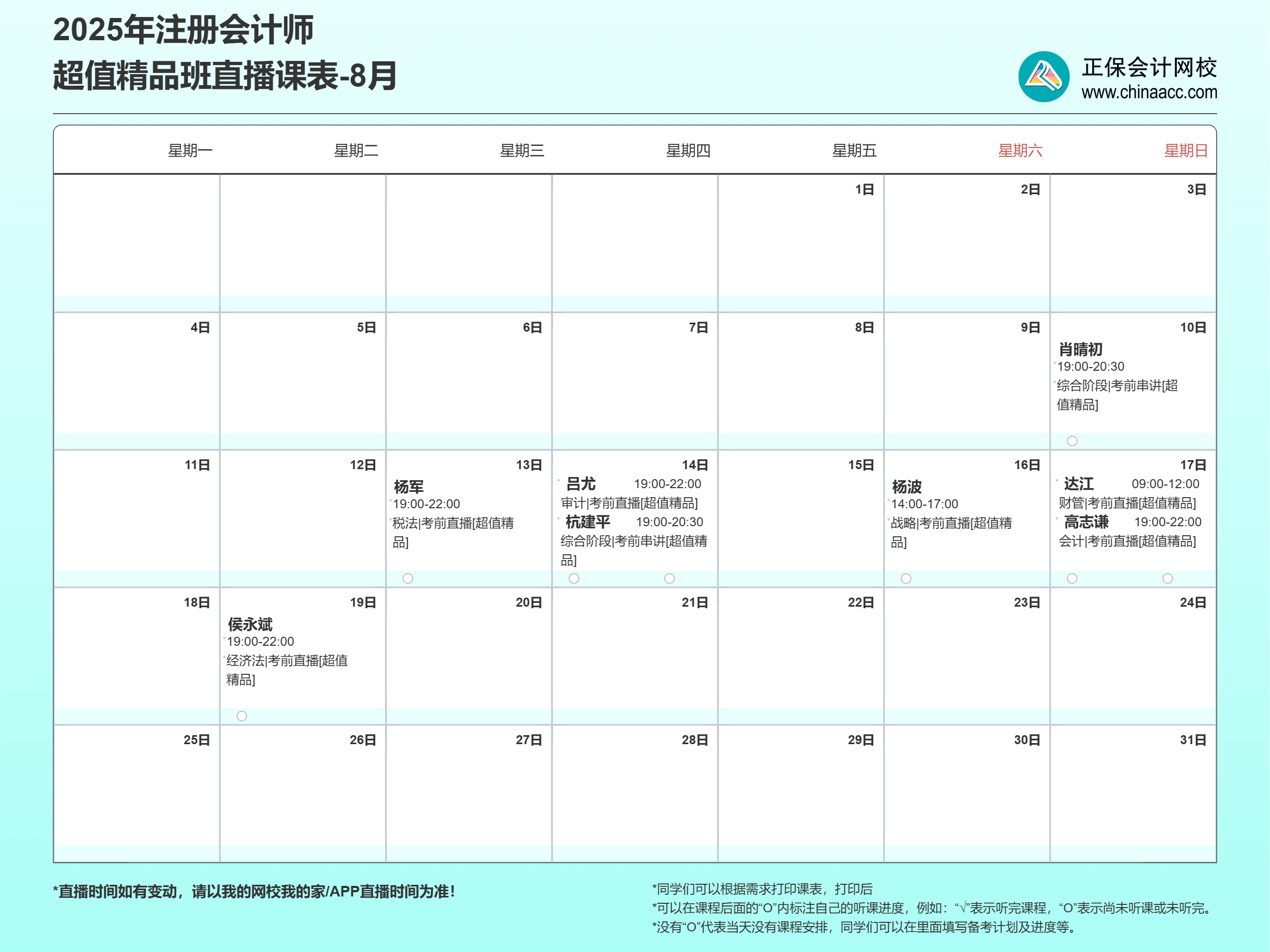 2025年注会考试临近,你学的如何了?网校2025注会超值精品班考前直播课表已出炉,快来Get课程安排,按时听课。