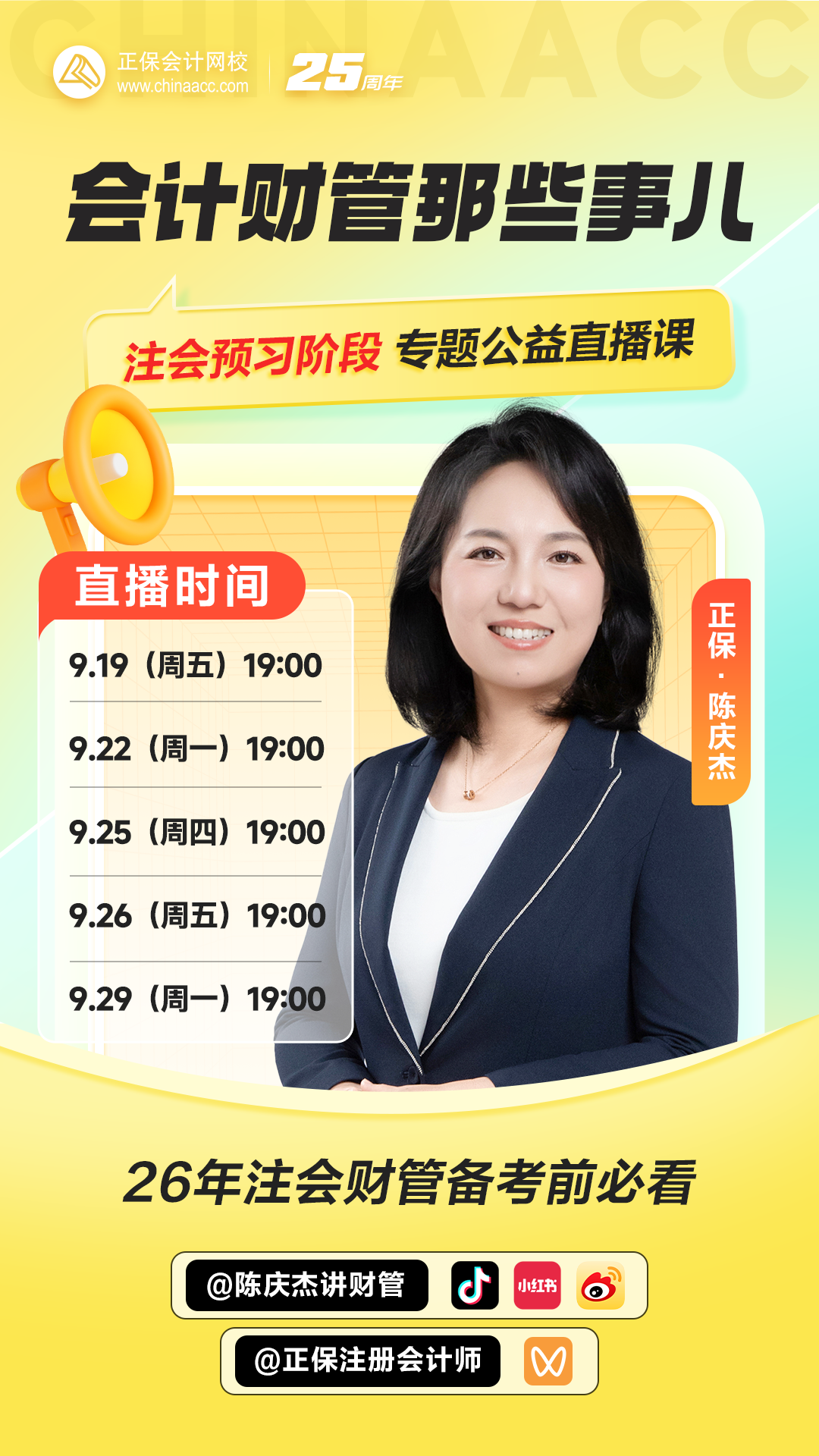1、直播播放平台:【正保注册会计师】视频号;抖音、小红书、微博,可在对应平台搜索【陈庆杰讲财管】观看。外部平台直播不提供回放,请各位小伙伴准时来直播间观看。