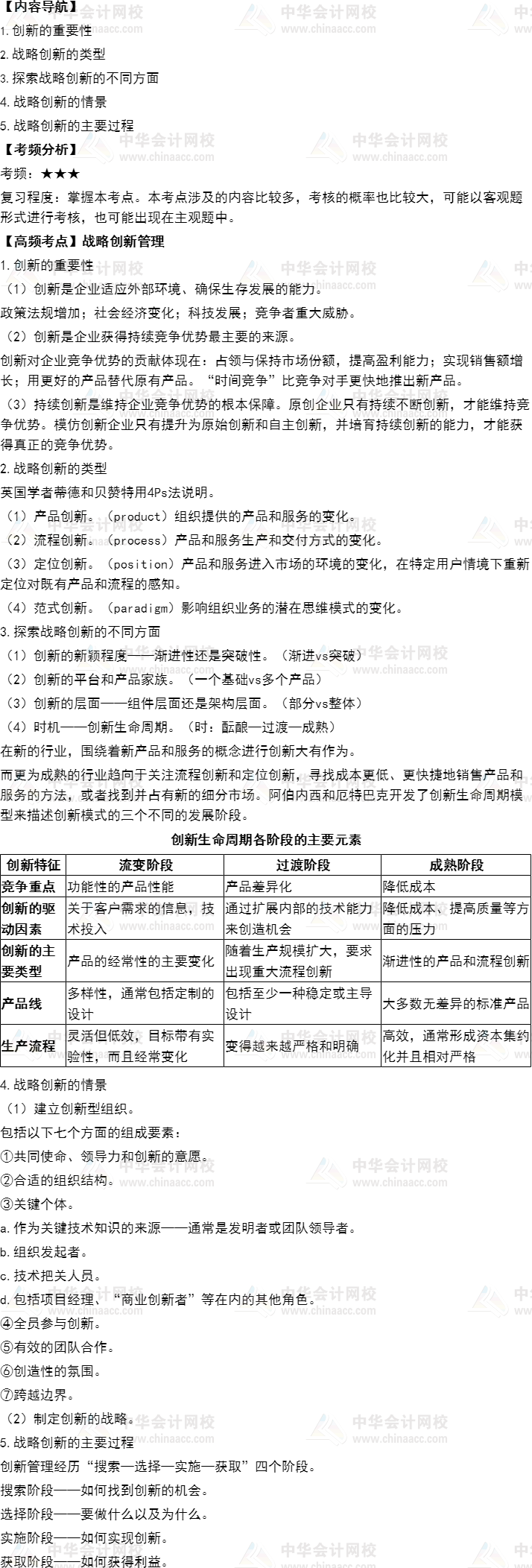 现在我们一起来学习2021年《公司战略与风险管理》高频考点:战略创新管理。本考点属于《公司战略与风险管理》第一章战略与战略管理第二节公司战略管理的内容。