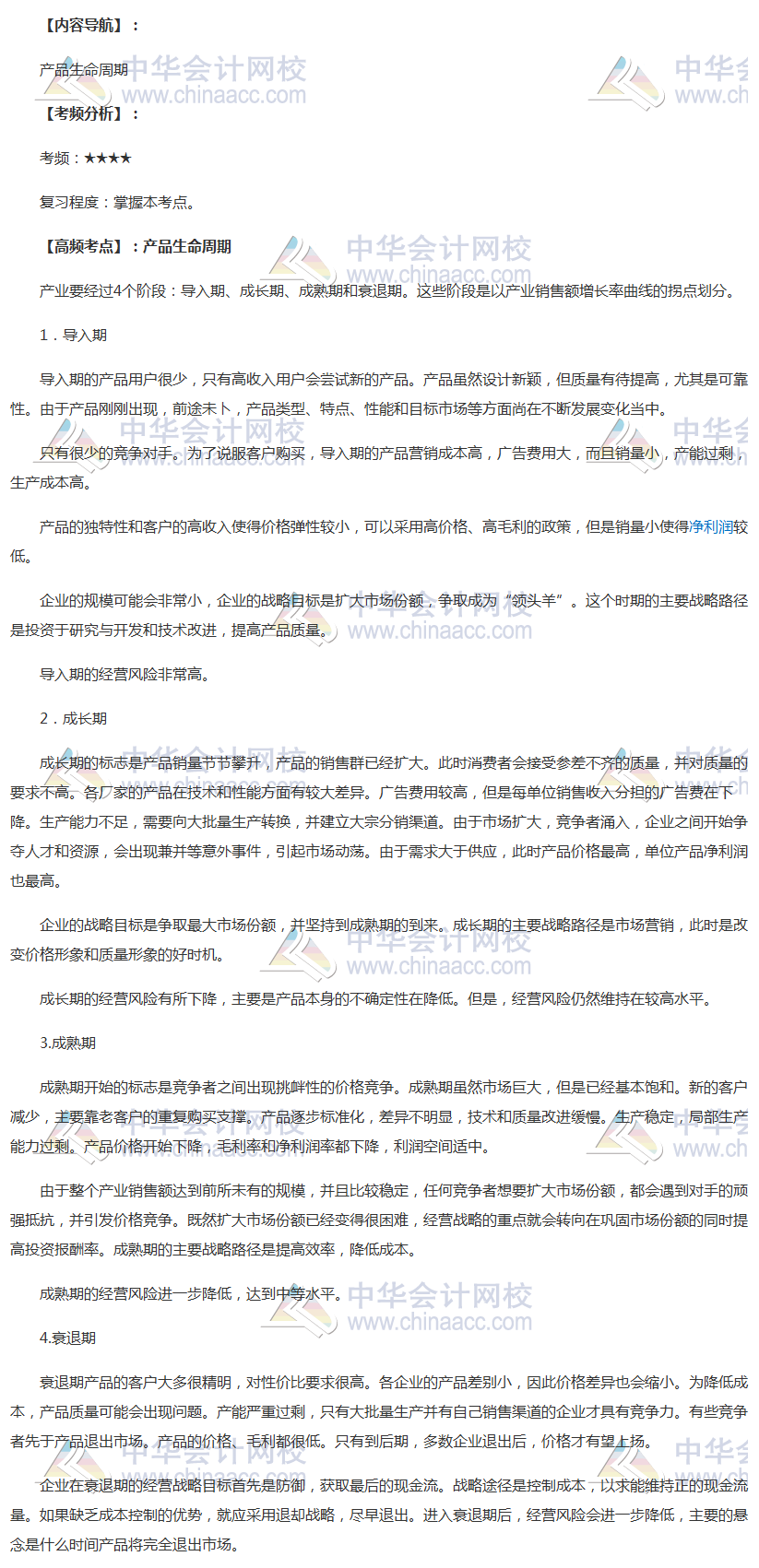 备考时间紧张,抓紧时间抓住重点备考注册会计师吧!正保会计网校教学老师为广大考生整理了高频考点,我们一起来学习2018《公司战略与风险管理》高频考点:产品生命周期。本考点属于《公司战略与风险管理》第二章战略分析第一节企业外部环境分析的内容。