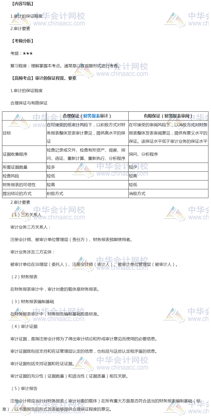 备考时间紧张,抓紧时间抓住重点备考注册会计师吧!正保会计网校教学老师为广大考生整理了高频考点,我们一起来学习2018《审计》高频考点:审计的保证程度、要素。