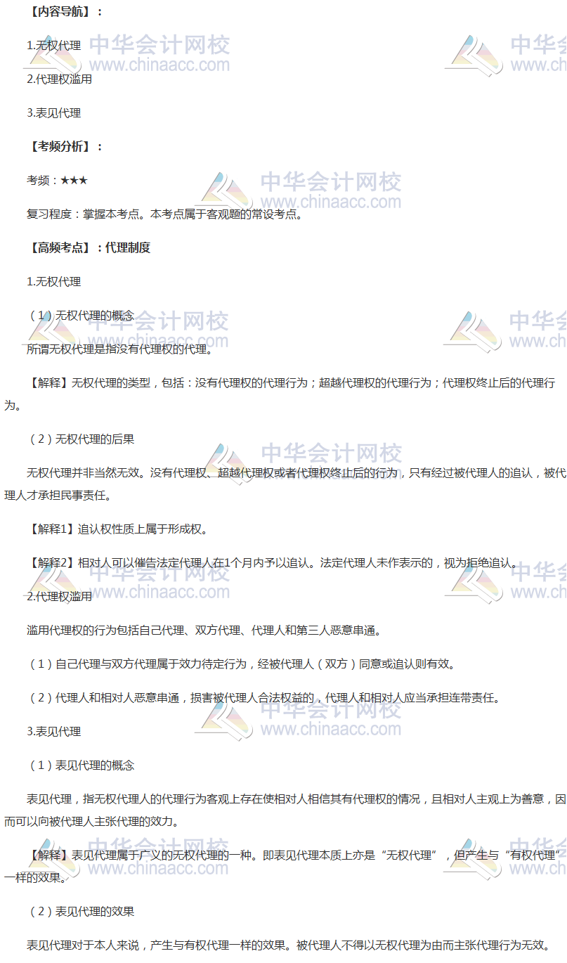 备考时间紧张,抓紧时间抓住重点备考注册会计师吧!正保会计网校教学老师为广大考生整理了高频考点,我们一起来学习2018年注册会计师《经济法》高频考点:代理制度。本考点属于注册会计师《经济法》第二章基本民事法律制度第二节代理制度的内容。