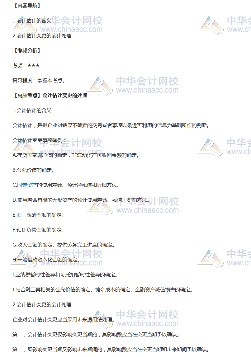 备考时间紧张,抓紧时间抓住重点备考注册会计师吧!正保会计网校教学老师为广大考生整理了高频考点,我们一起来学习2018年注册会计师《会计》高频考点:会计估计变更的处理。本考点属于注册会计师《会计》第二章会计政策、会计估计及其变更和差错更正第二节会计估计及其变更的概述和第四节会计估计变更的会计处理的内容。