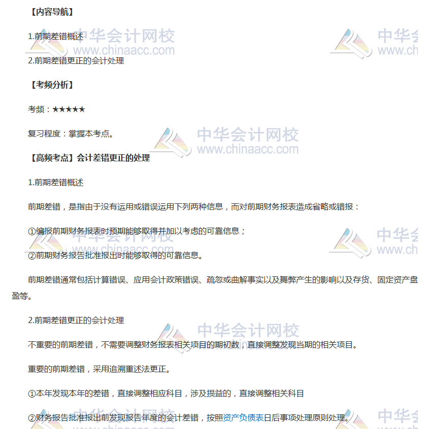 备考时间紧张,抓紧时间抓住重点备考注册会计师吧!正保会计网校教学老师为广大考生整理了高频考点,我们一起来学习2018年注册会计师《会计》高频考点:会计差错更正的处理。本考点属于注册会计师《会计》第二章会计政策、会计估计及其变更和差错更正第五节前期差错及其更正的内容。
