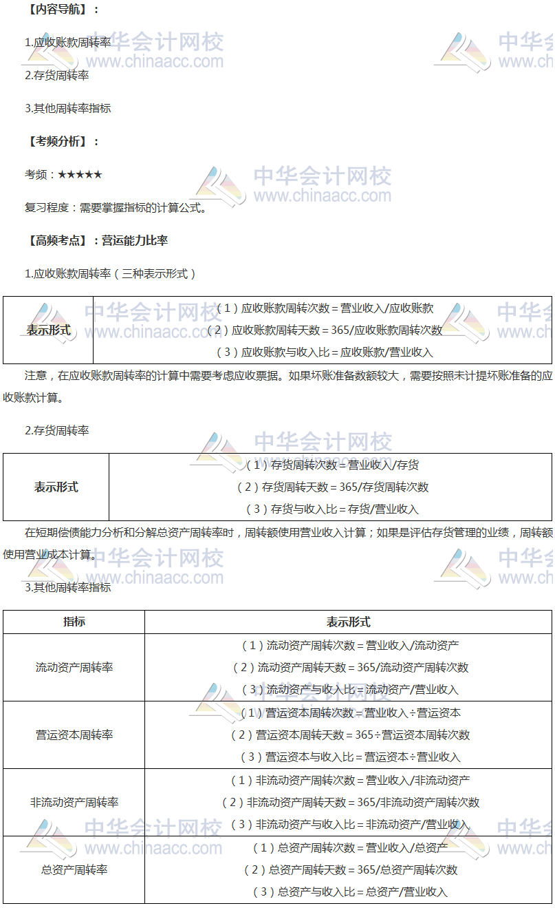 备考时间紧张,抓紧时间抓住重点备考注册会计师吧!正保会计网校教学老师为广大考生整理了高频考点, 我们一起来学习2018年注册会计师《财务成本管理》高频考点:营运能力比率。本考点属于注册会计师《财务成本管理》第二章财务报表分析和财务预测第二节财务比率分析的内容。