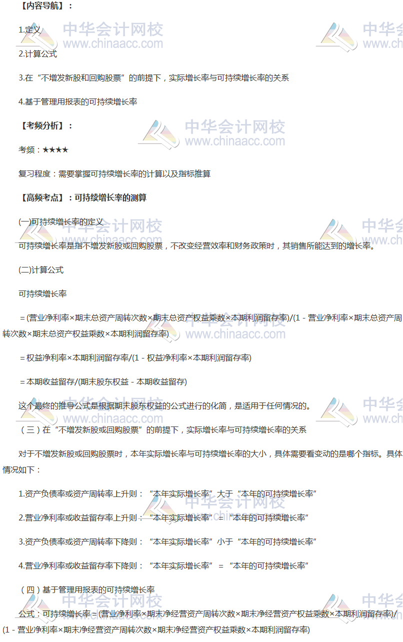 备考时间紧张,抓紧时间抓住重点备考注册会计师吧!正保会计网校教学老师为广大考生整理了高频考点,我们一起来学习2018年注册会计师《财务成本管理》高频考点:可持续增长率的测算。本考点属于注册会计师《财务成本管理》第二章财务报表分析和财务预测第四节增长率与资本需求的测算的内容。