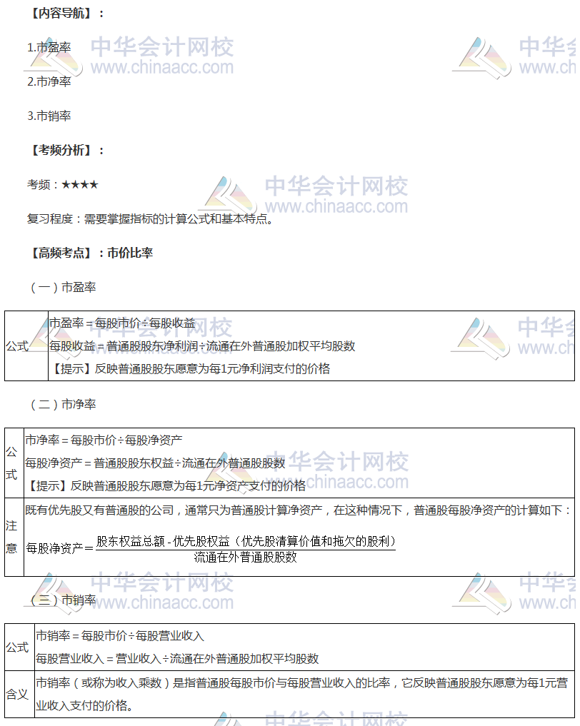 备考时间紧张,抓紧时间抓住重点备考注册会计师吧!正保会计网校教学老师为广大考生整理了高频考点, 我们一起来学习2018年注册会计师《财务成本管理》高频考点:市价比率。本考点属于注册会计师《财务成本管理》第二章财务报表分析和财务预测第二节财务比率分析的内容。