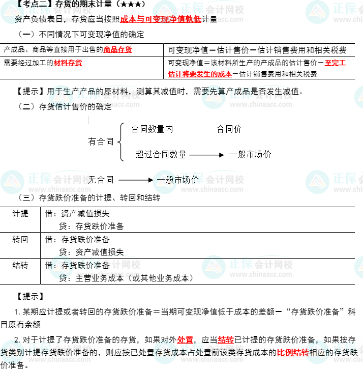 预习考点 | 存货的初始计量、存货的期末计量 |
