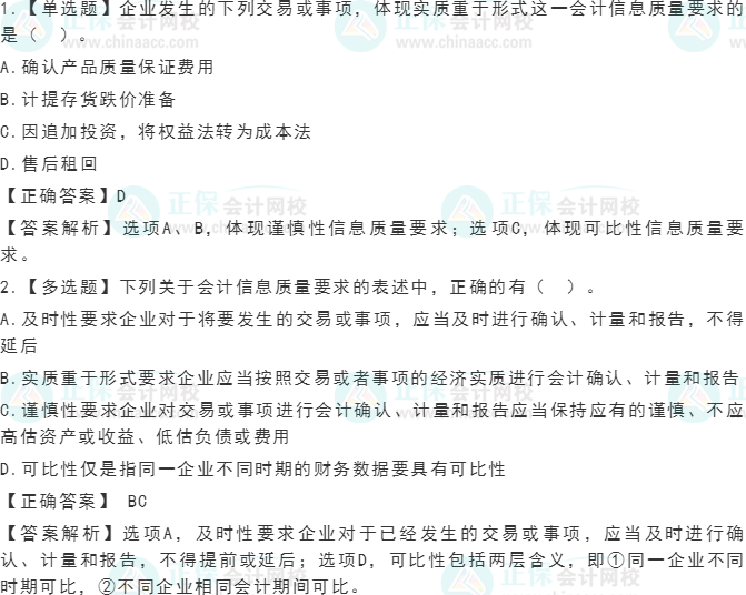 【知识点】会计信息质量要求