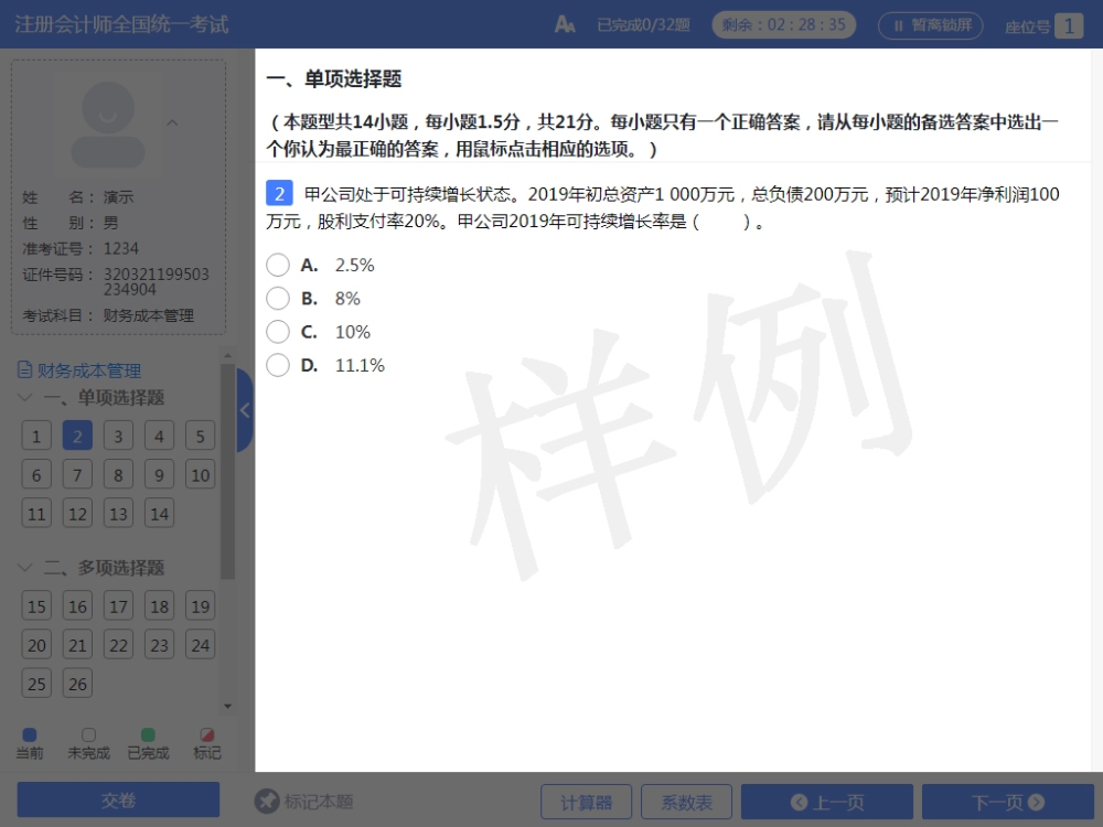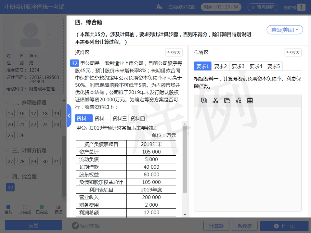 计算器:点击计算器按钮将打开计算器软件,协助考生完成计算。