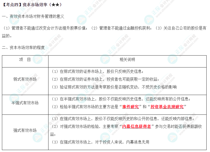 2022年注会《财管》第一章高频考点4:资本市场效率