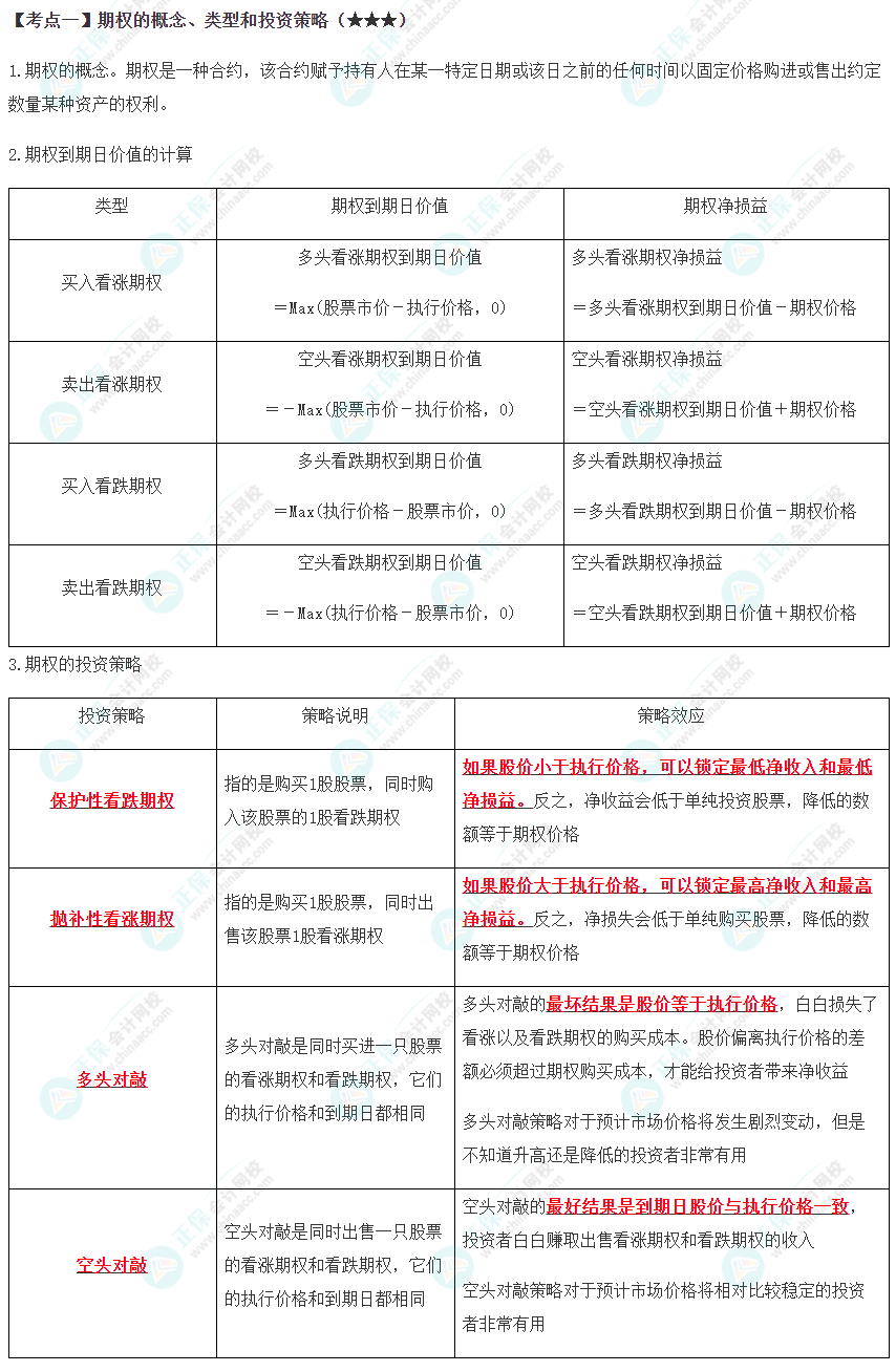 高频考点 | 期权的概念、类型和投资策略,金融期权价值评估 |
