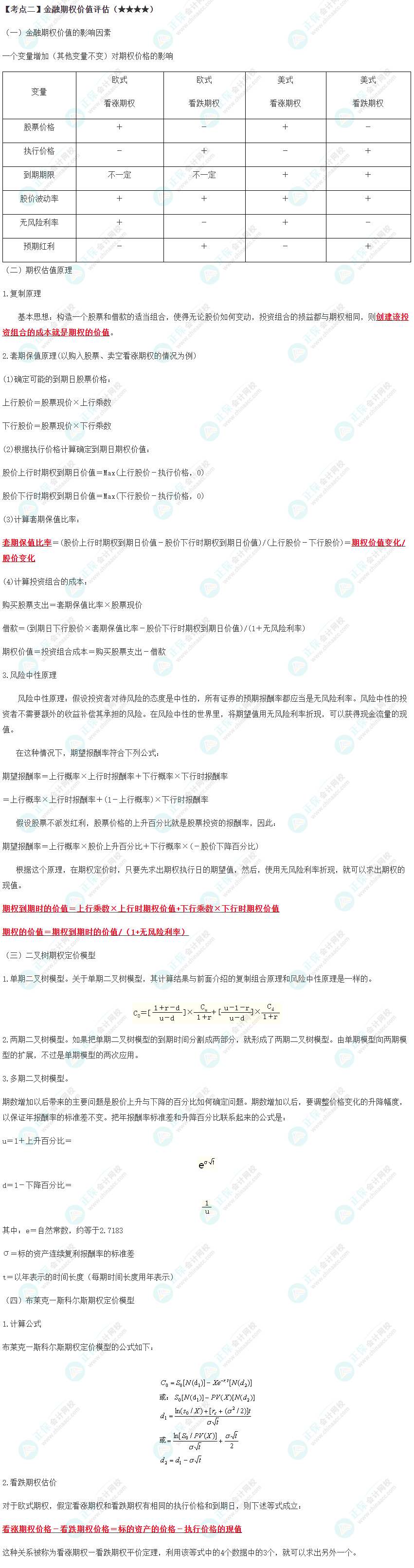 高频考点 | 期权的概念、类型和投资策略,金融期权价值评估 |
