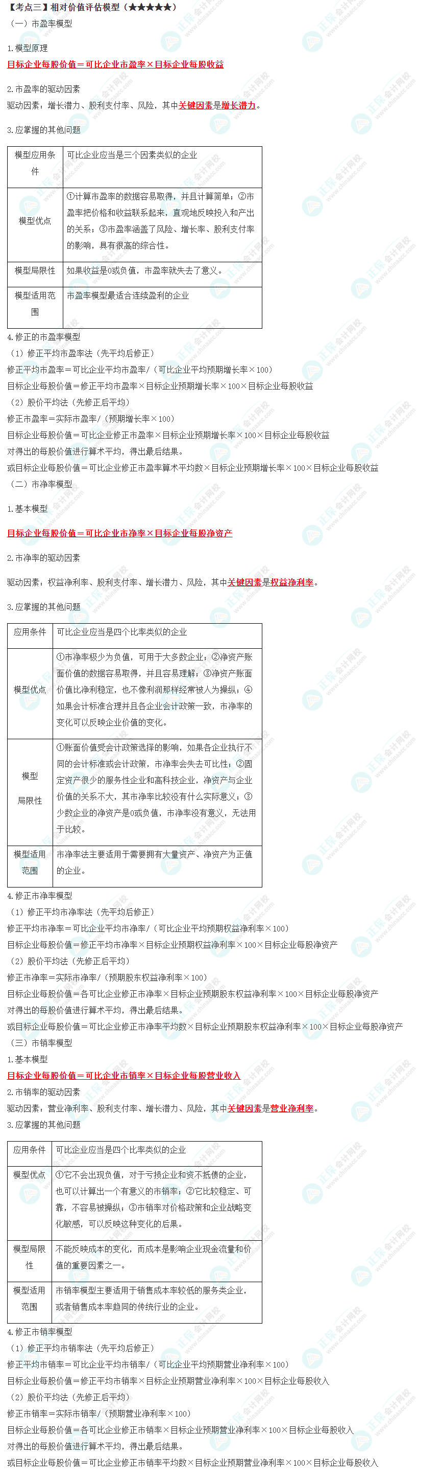 2022年注会《财管》第八章高频考点3:相对价值评估模型