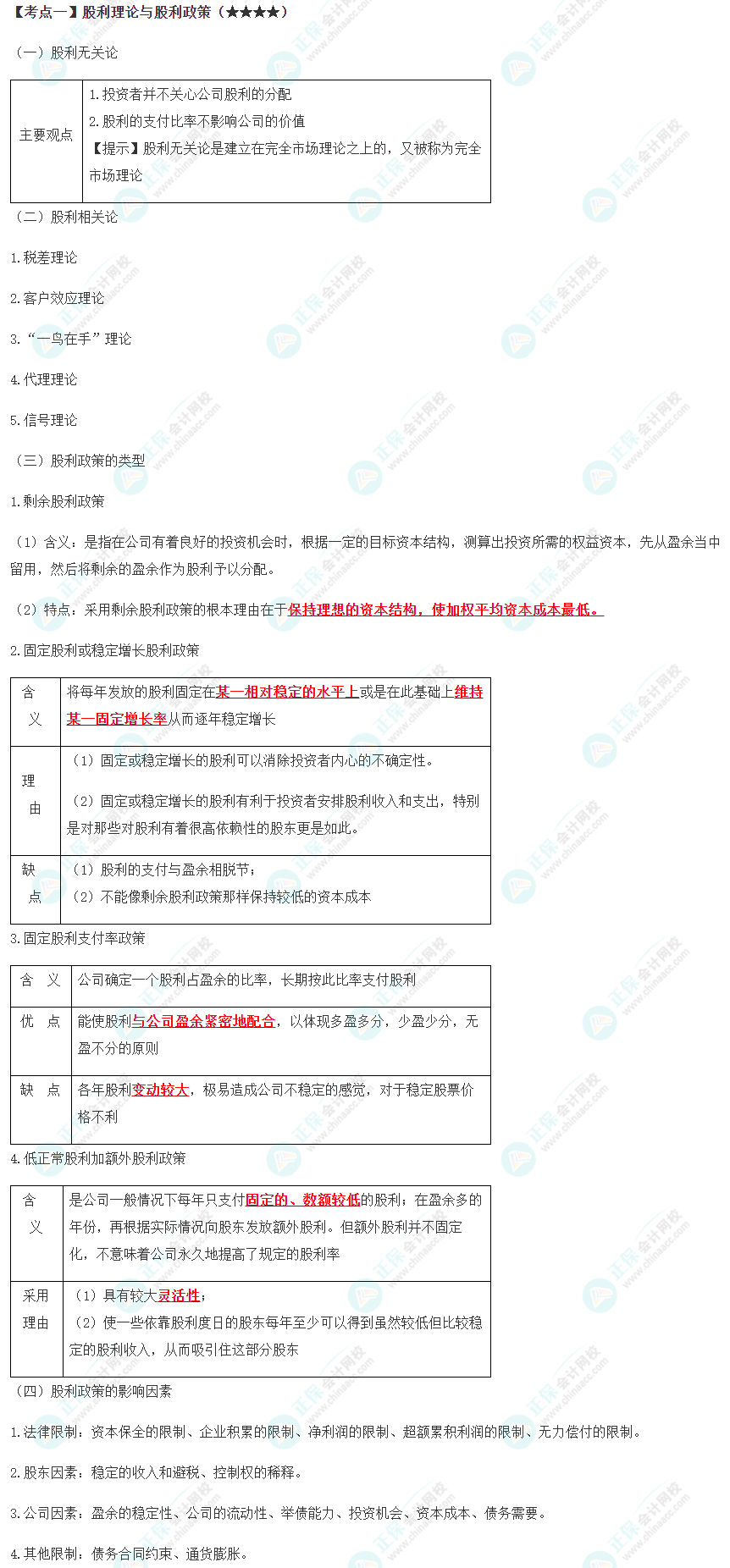 2022年注会《财管》第十一章高频考点1:股利理论与股利政策