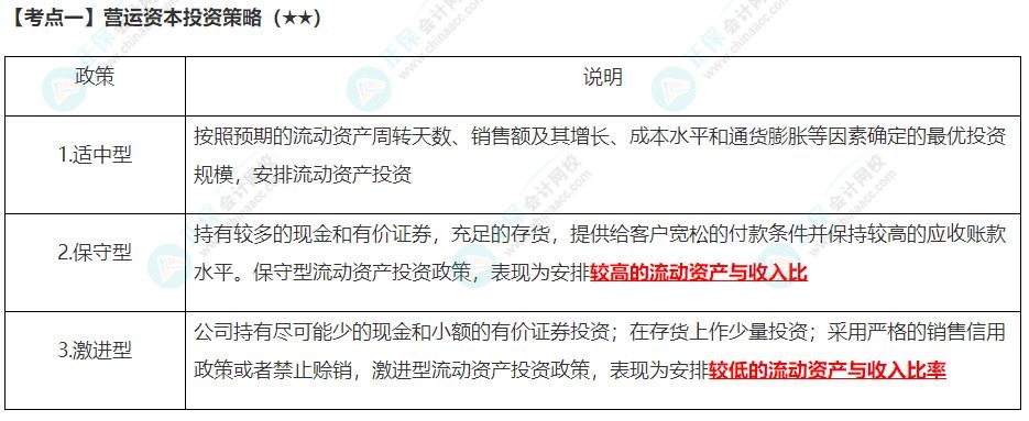 高频考点 | 营运资本投资策略、营运资本筹资策略、现金管理、应收款项管理、存货管理、短期债务管理 |