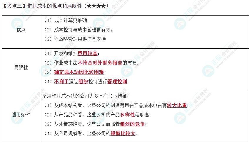 高频考点 | 作业成本法的概念与特点、作业成本计算、作业成本的优点和局限性 |