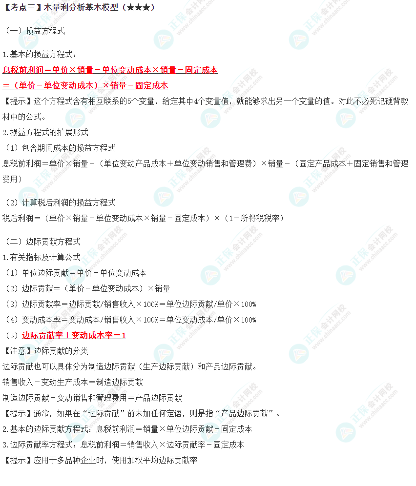 2022年注会《财管》第十六章高频考点3:本量利分析基本模型