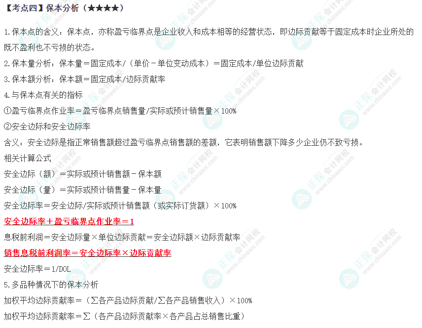高频考点 | 成本性态分析、变动成本法、本量利分析基本模型、保本分析、保利分析、利润敏感性分析 |