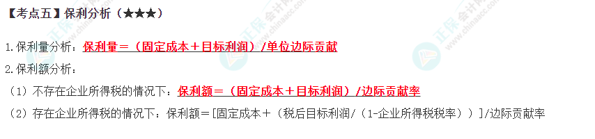 成本性态分析、变动成本法、本量利分析基本模型、保本分析、保利分析、利润敏感性分析
