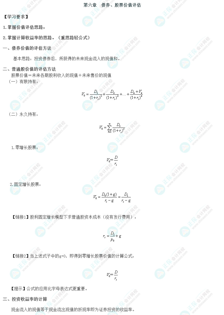 2022年注会考试《财管》教材第六章重要公式汇总