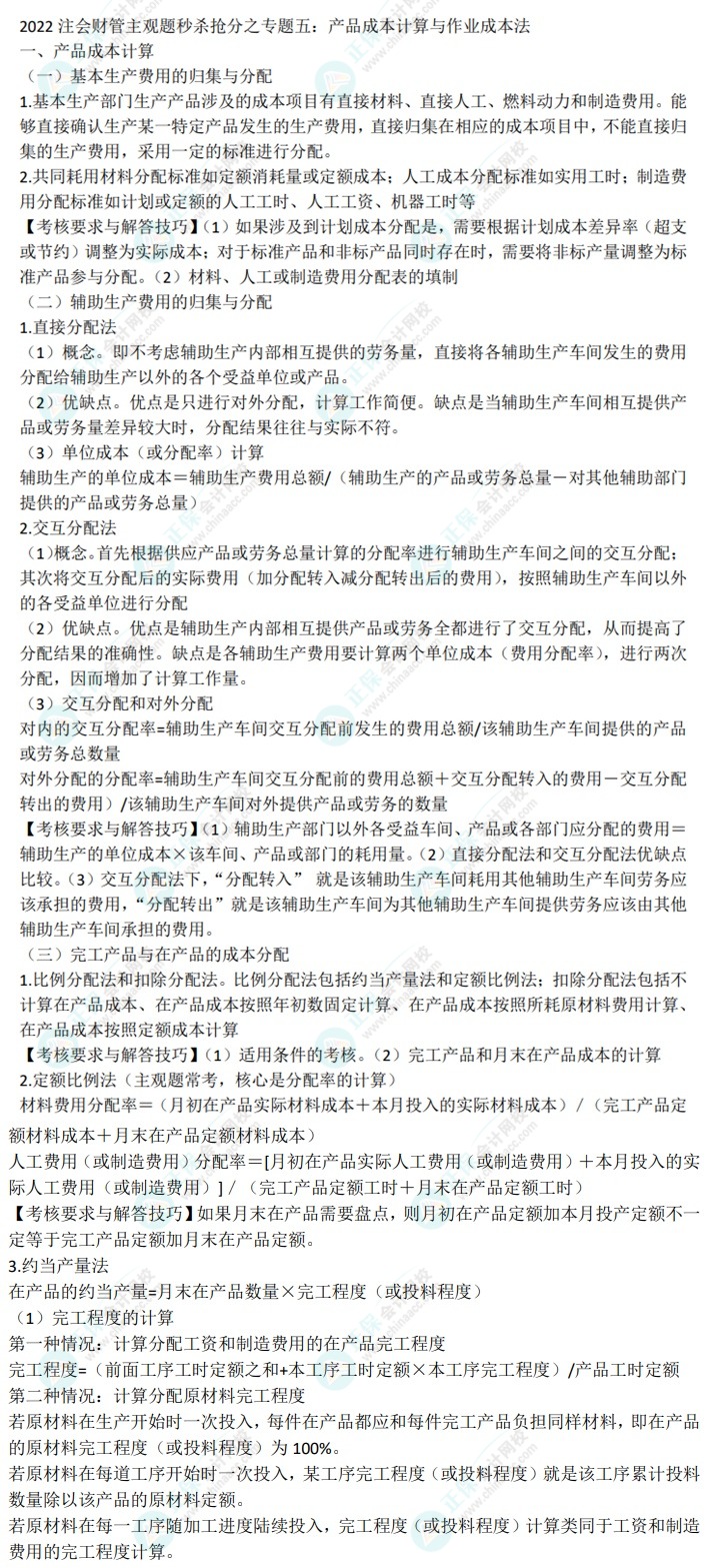 备考2022年注会考试的小伙伴们注意啦!网校老师为大家整理了2022 注会财管主观题秒杀抢分之专题五:产品成本计算与作业成本法,快来一起学习吧!
