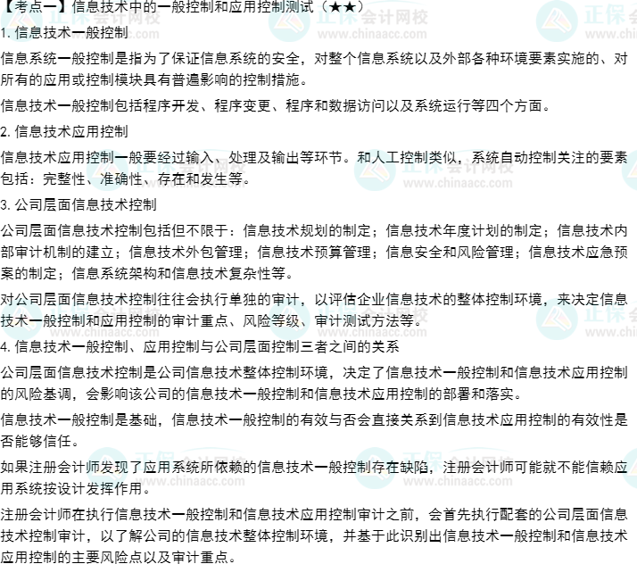 预习考点 | 信息技术中的一般控制和应用控制测试、信息技术对审计过程的影响 |