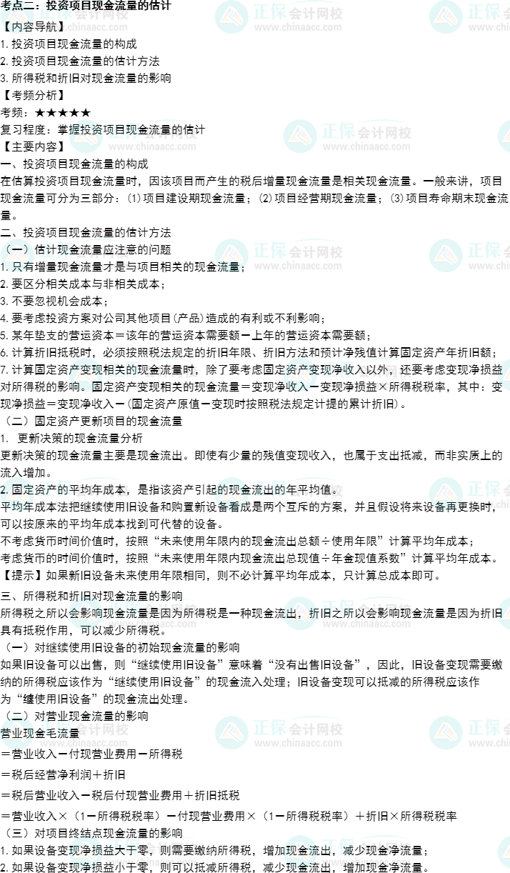 本章属于重点章节,内容多,难度大,综合性强。重要的考点包括投资项目现金流量