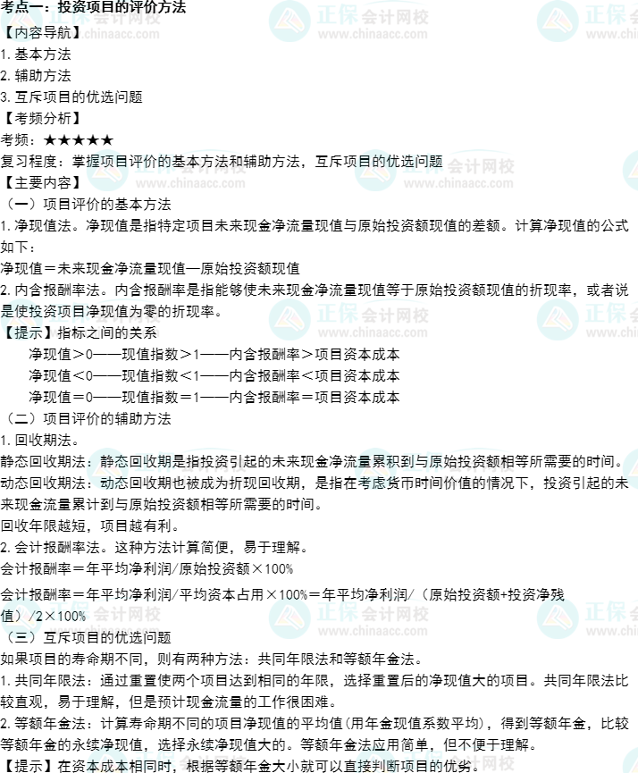 考点一 | 投资项目的评价方法 | ★★★★★ |