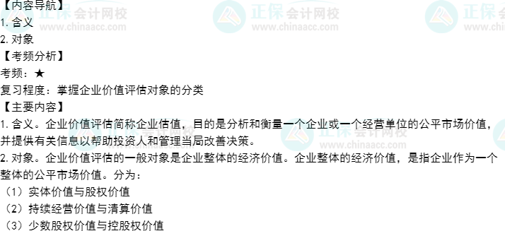 考点一 | 企业价值评估的目的和对象 | ★ |
