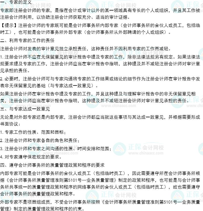 预习考点 | 内部审计和注册会计师的关系、确定是否利用、在哪些领域利用以及在多大程度上利用内审工作/直接协助、利用专家的工作 |