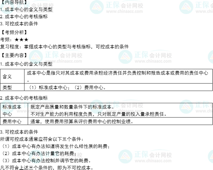 本章属于非重点章,从历年考试情况来看,常以客观题的形式出现,偶有计算分析题的个别小问,但难度都不算太大。记忆性的内容较多,涉及到计算的是三种责任中心的评价指标。客观题常见的考点有:责任成本的含义、判别和责任归属;利润中心考核指标的计算及应用;内部转移价格适用的情况。