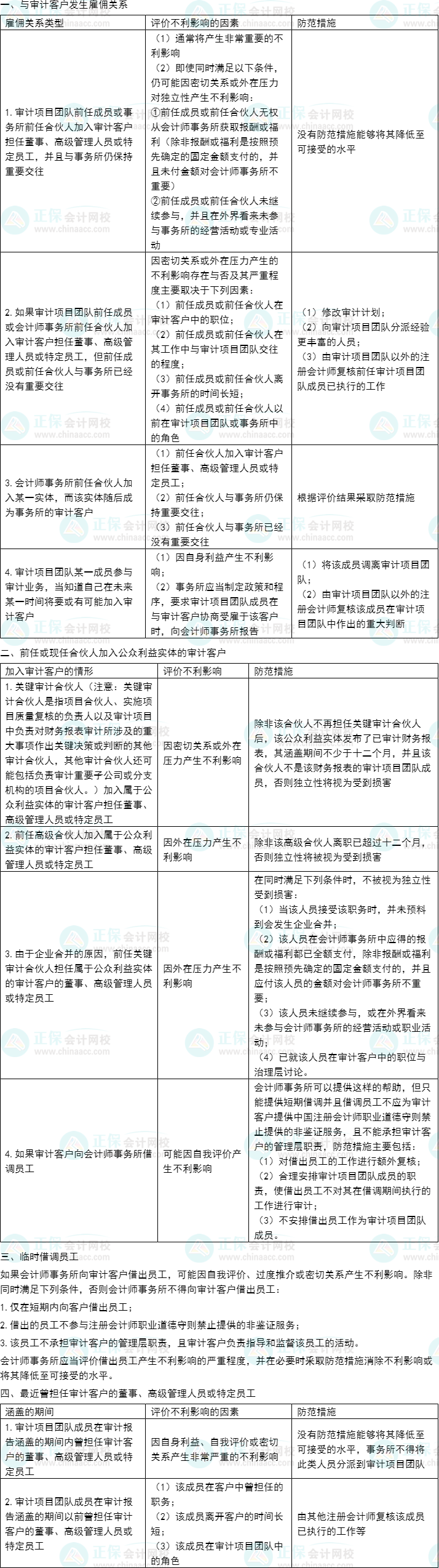 预习考点 | 经济利益、贷款和担保以及商业关系、家庭和私人关系、与审计客户发生人员交流、与审计客户长期存在业务关系、为审计客户提供非鉴证服务 |
