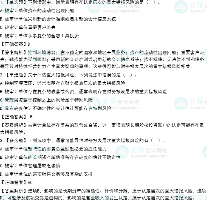 在备考过程中,我们不能忽略的就是那些易混易错题,往往容易做错的题会导致我们考试失分,所有一定要把握好哦!正小保整理了2023年注会《审计》预习阶段第七章比较常见的易混易错题,希望能对同学们备考注会有所帮助~