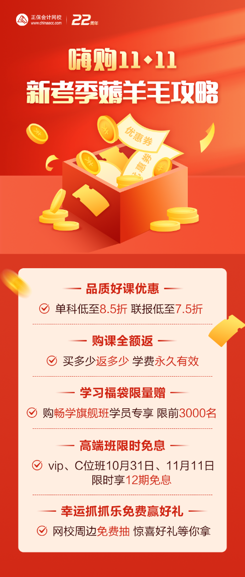 怎么样?心动了吗?这次嗨购11♥11,是不是让大家“省”到底,“玩”到底,“嗨”到底啦?不用一日回到解放前,就能轻轻松松买到心仪的课程,准备参加2023年注册会计师考试的小伙伴们,机会难得,时间有限哦!让我们领跑新考季,燃向新“证”途吧!