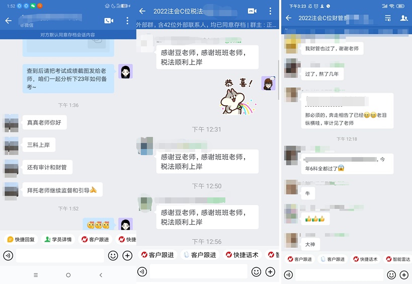 2022年注会的考试成绩公布后,C位夺魁班群里炸了~原来是同学们化身“过儿”,带着对老师的感谢纷纷来报喜啦!