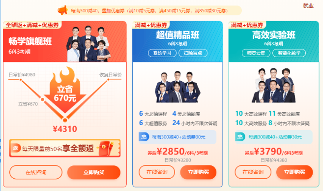 4、VIP签约特训班、C位夺魁班、图书等不参与满减活动。