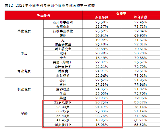 根据中注协公布的数据来看,26-35岁专业阶段通过率最高,25岁以下的综合阶段通过率最高。