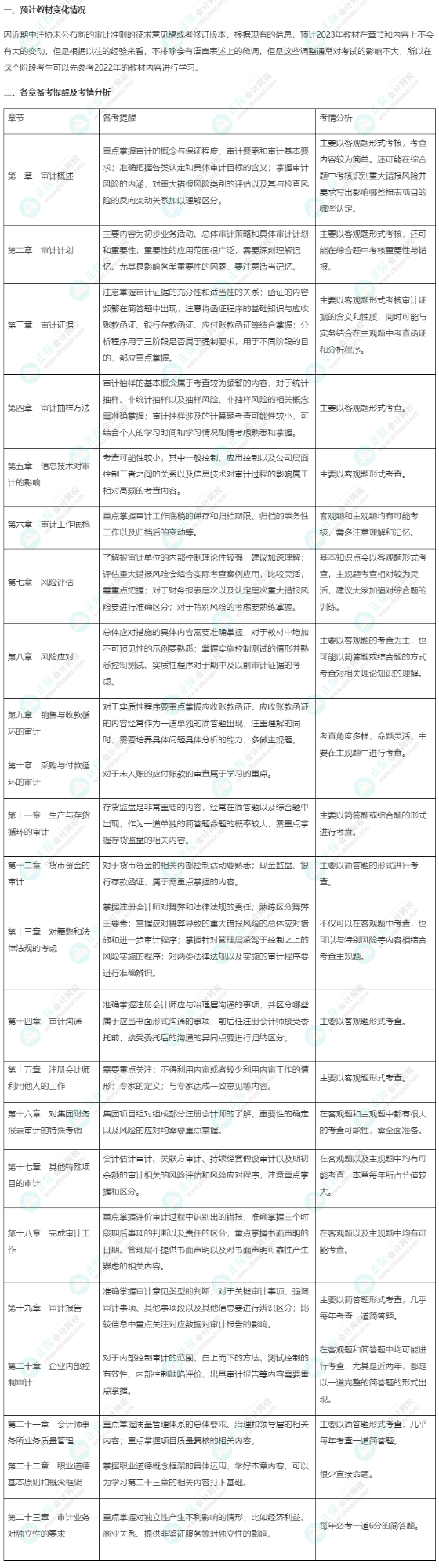新教材暂未下发,大家可以先用2022年的教材开启2023年度课程的学习,可以先对审计教材有一个初步的了解和认识。下面老师为您的备考提供了预习阶段一系列的学习方法及注意事项,希望能对您的备考起到帮助!
