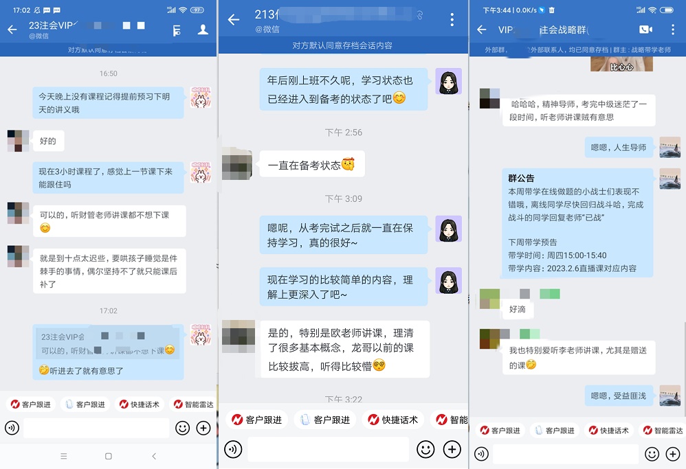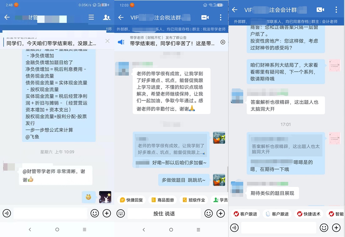 注会报名在即,你的备考进度如何了?VIP签约特训班带学正在进行中,大家都在埋头苦学呢,你再不抓紧可就被远远的落下了!下面跟着正小保一起来看看vip班的学员们的真实感受吧~