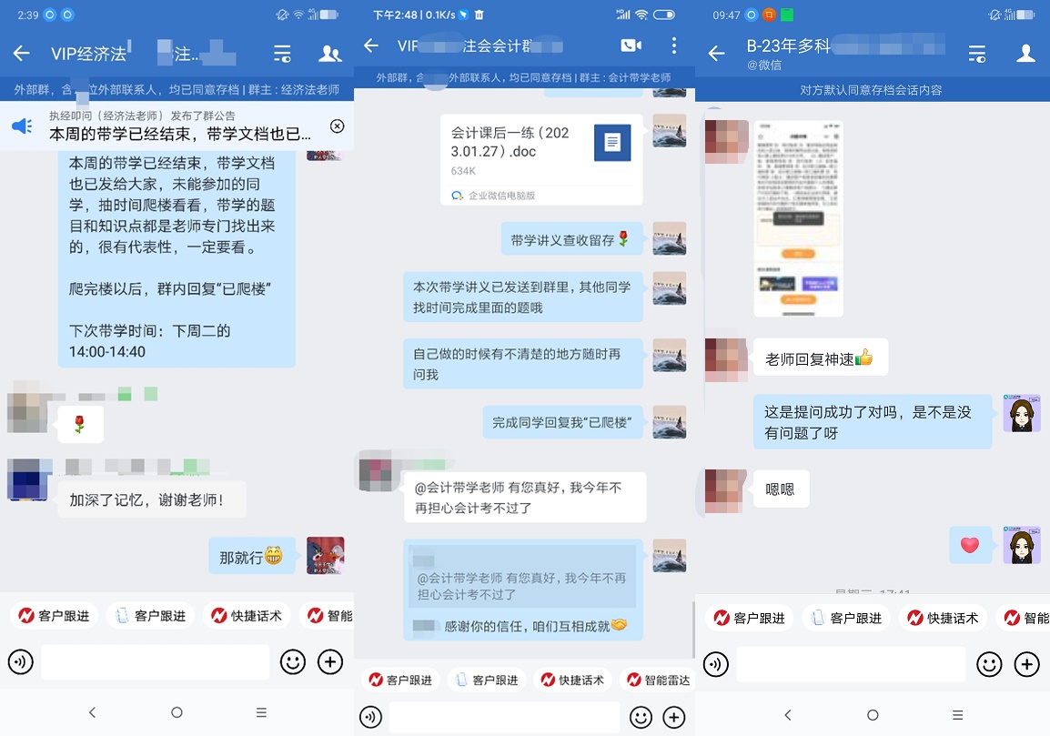“带学加深了记忆,不再担心会计考不过了...老师回复问题也是非常快!”