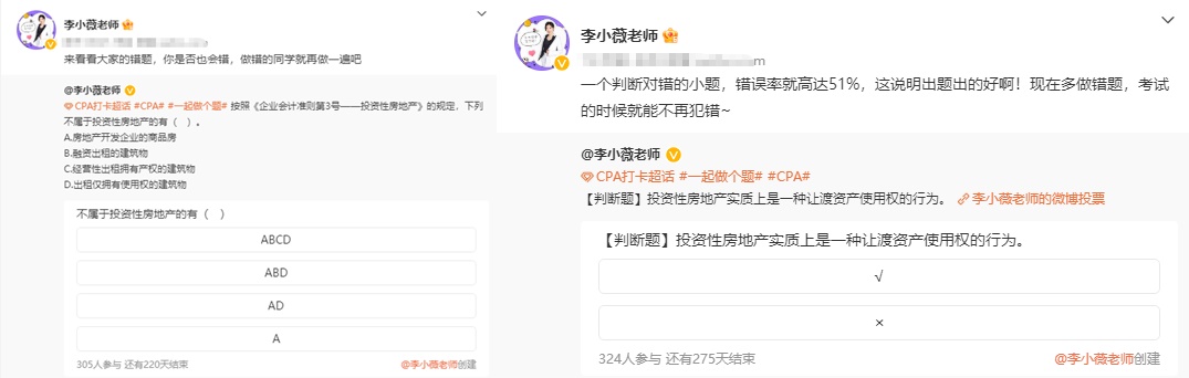备考2023年注会考试的小伙伴们注意啦!李小薇老师在微博里为大家整理了注会考试中经常会出错的题目,快来跟着老师一起打卡做题吧!